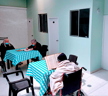 En nuestro Hogar Geriátrico para el adulto mayor es un lugar en donde se realizan diferentes actividades, incluyendo cinco comidas (Desayuno, medias nueves , almuerzo, onces y cena dependiendo de la dieta indicada para cada uno de nuestros abuelos) Servicio de Enfermería 24 Horas, Consulta Médica mensual y seguimiento, Consulta Trimestral por Nutrición, Fisioterapia, Terapia Ocupacional entre otras. Disfruta de nuestras amplias Habitaciones donde cuidamos con Amor a los que más quieres.
